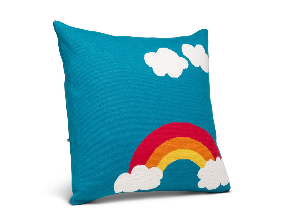 Opløftende, lys og skabt til at fremkalde smil – det glædelige regnbuepudebetræk indfanger det perfekte øjeblik efter en storm. Med en dristig regnbue, der buer sig gennem bløde skyer på en lys himmelblå baggrund, er denne pude designet til børneværelser, hyggekroge eller alle, der elsker et strejf af farve og optimisme. Strikket i genbrugsbomuldsblanding med overskudsgarn. Regnbue og skyer er fuldt strikket ind, ikke trykt. Standardstørrelse: 45x45 cm (inderside medfølger ikke). Kuvertlignende bagside for en pæn og nem pasform. Holdbar, blød og bæredygtig. Et muntert touch til ethvert rum – perfekt til at give som gave eller til at have tæt på for at lyse din dag op. ** Pudebetræk medfølger ikke.
