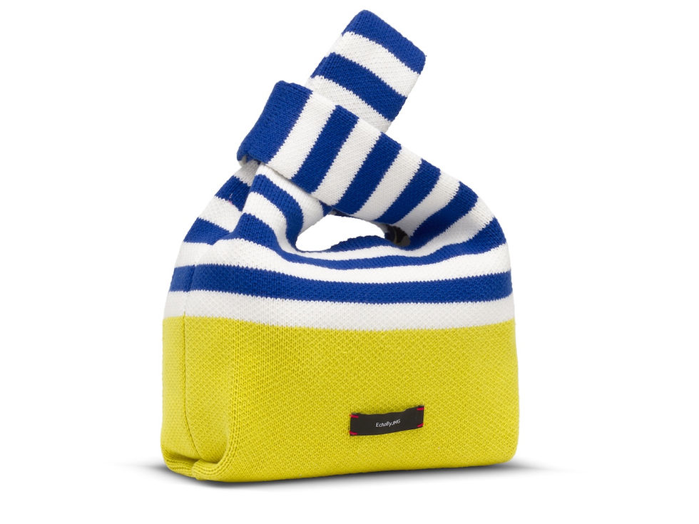 Make every day brighter with our Stripe Pop Lunch Bag. Designed with bold, playful stripes, this knitted bag comes in two striking colourways: classic navy-and-white with a vibrant yellow base, or a fun pink-and-navy mix on black. Made from carefully selected leftover yarns, it’s sustainable, stylish, and the perfect size for your lunch or daily essentials.