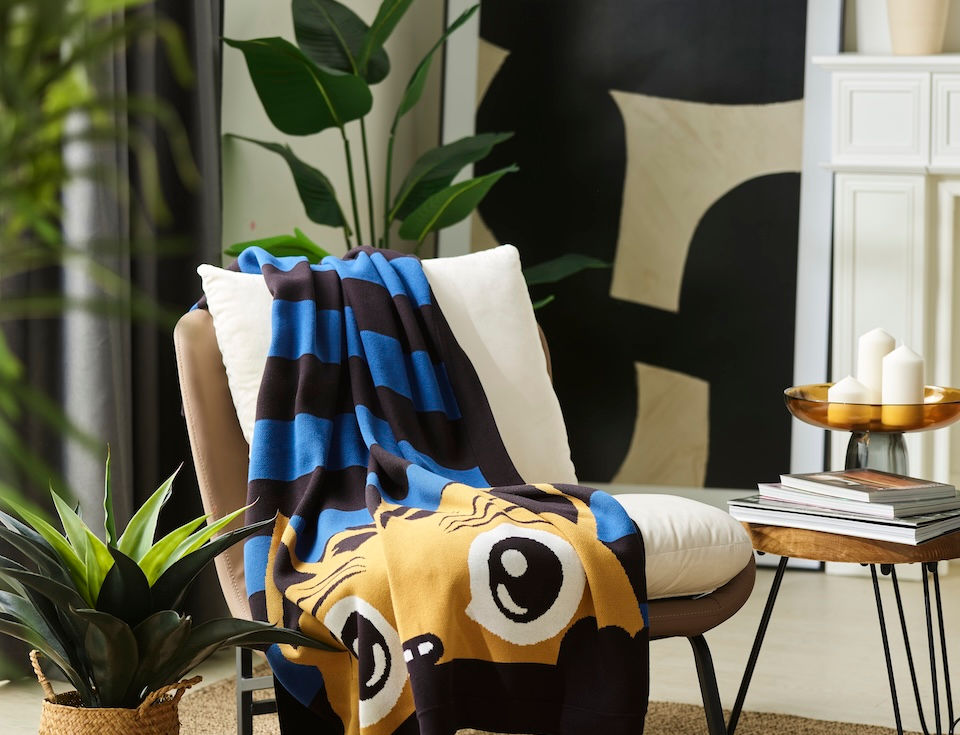 Peek-a-boo! Our Stripey Spy Throw brings a playful twist to your home with its bold stripes and curious cat design. Perfectly paired with the matching Stripey Spy Cushion Cover, this throw is knitted in 50% organic cotton and 50% recycled yarn, using carefully selected leftover yarns from our factory. Soft, sustainable, and full of personality — it’s a cosy statement piece that adds warmth and fun to any room.